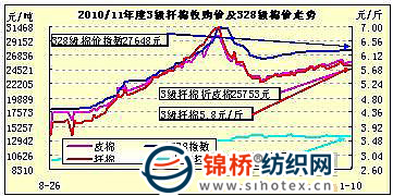 錦橋紡織網(wǎng)—資訊頻道> 棉花信息> 棉花現(xiàn)貨>正文 國內(nèi)棉花現(xiàn)貨行情(11-1-10)