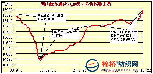 中國棉花價格指數(shù)行情(10-22)