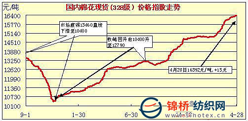主產(chǎn)棉區(qū)4月份棉價(jià)變動(dòng)情況