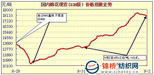 中國(guó)棉花價(jià)格指數(shù)行情(10-9-2)