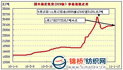 中國棉花價格指數(shù)行情(11-1-17)