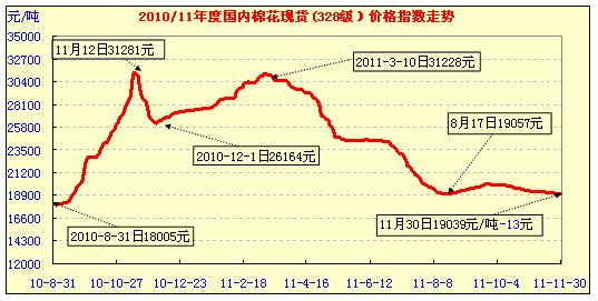 11月份各地區(qū)棉價(jià)變動(dòng)情況