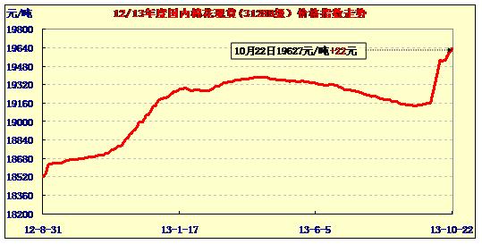 中國(guó)棉花價(jià)格指數(shù)行情(10-22)