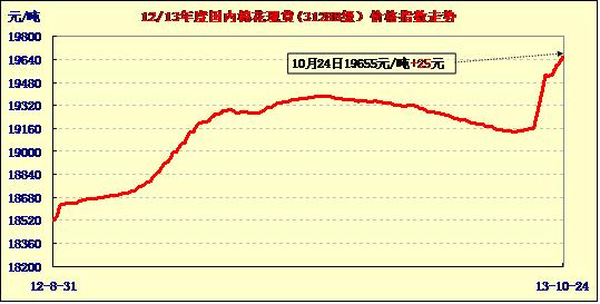 中國(guó)棉花價(jià)格指數(shù)行情(10-24)