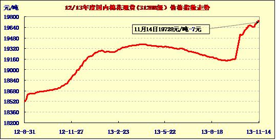 中國(guó)棉花價(jià)格指數(shù)行情(11-14)