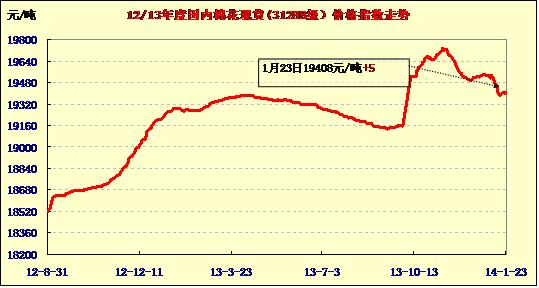 中國(guó)棉花價(jià)格指數(shù)行情(01-23)