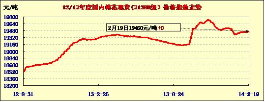 中國(guó)棉花價(jià)格指數(shù)行情(02-19)