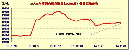 中國(guó)棉花價(jià)格指數(shù)行情(02-26)