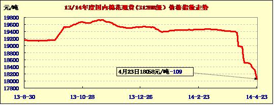 中國(guó)棉花價(jià)格指數(shù)行情(04-23)