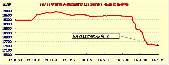 中國(guó)棉花價(jià)格指數(shù)行情(05-21)