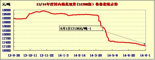 中國(guó)棉花價(jià)格指數(shù)行情(08-01)