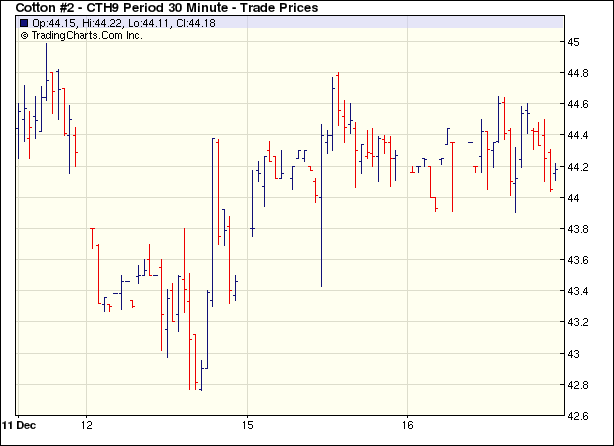12月16日,美聯(lián)儲(chǔ)大幅降息至記錄低點(diǎn),同時(shí)承諾采取更多非傳統(tǒng)手段,股市受助大漲,而美元繼續(xù)大幅走弱,谷物反彈,但原油繼續(xù)走低,期棉平開后窄幅區(qū)間波動(dòng),交投缺乏亮點(diǎn),盤終除近期合約跌2點(diǎn)外,其余合約微弱上漲。 當(dāng)日紐約期棉平開,美元走弱,引領(lǐng)外圍商品強(qiáng)勢(shì)上漲,其后美聯(lián)儲(chǔ)的降息消息刺激股市走高,但期棉交投依然死水微瀾,3月合約僅小幅走高75點(diǎn)便回落,而其它合約走勢(shì)也基本雷同,市場(chǎng)交投極其清淡,乏善可陳,基差交易占主導(dǎo),市場(chǎng)更多選擇觀望,成交縮量至僅6700手。 美國(guó)三大股指受美聯(lián)儲(chǔ)強(qiáng)勢(shì)政策刺激大幅上揚(yáng);美元指數(shù)則延續(xù)回落,盤終最低跌破80,回到2月前的水平。德州學(xué)者稱新年度棉價(jià)與其它谷物相比,依然不具有競(jìng)爭(zhēng)力,預(yù)計(jì)美棉種植面積將繼續(xù)減少。 紐約棉花期貨首期0903合約近三個(gè)交易日交易走勢(shì) |
