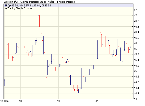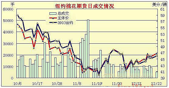 12月22日原油繼續(xù)大跌,拖拽商品期貨震蕩走低,但中國再度調(diào)降利息利好期棉,同時(shí)美元走弱也刺激期棉震蕩揚(yáng)升,盤終各合約中幅度上漲,3月合約漲66點(diǎn)。當(dāng)日紐約期棉大幅高開,美元走弱,投機(jī)買盤推動(dòng)期棉大幅走高,3月合約最高46.45美分,高位賣盤打壓,同時(shí)原油延續(xù)大跌,打壓期棉走弱,不過底部支撐較強(qiáng),買盤再度刺激期棉回漲,并保持至終盤。當(dāng)日成交僅有4200手,節(jié)假日氣氛濃厚,部分席位已經(jīng)撤離準(zhǔn)備假期。 中國再度小幅調(diào)降利息刺激經(jīng)濟(jì)增長,同時(shí)中國年內(nèi)第三次收儲(chǔ)即將開始,部分分析人士認(rèn)為中國對(duì)美棉的需求可能要上升。市場經(jīng)濟(jì)指標(biāo)不多,市場關(guān)注即將公布的美棉月度消費(fèi)。外圍市場方面,紐約2月原油大跌5.78%跌破40美元。 紐約棉花期首期0903合約近三個(gè)交易日交易走勢 |