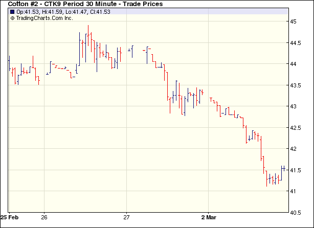3月2日外圍市場利空紐約期棉低開下滑大跌近200點(diǎn)