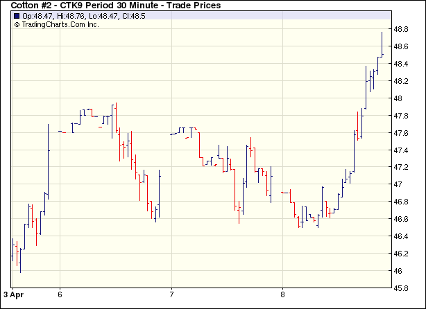 4月9日紐約期棉高開高走尾盤下挫收跌