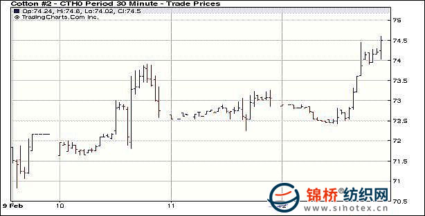 紐約期棉震蕩收陽漲幅收窄(2-10)