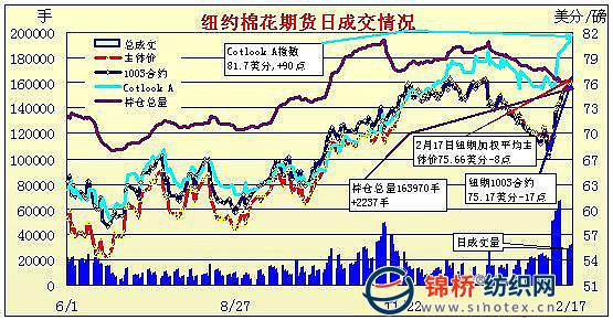 錦橋紡織網(wǎng)—資訊頻道> 棉花信息> 紐棉期貨>正文 紐約期棉因美元上漲結(jié)束六連陽(2-17)