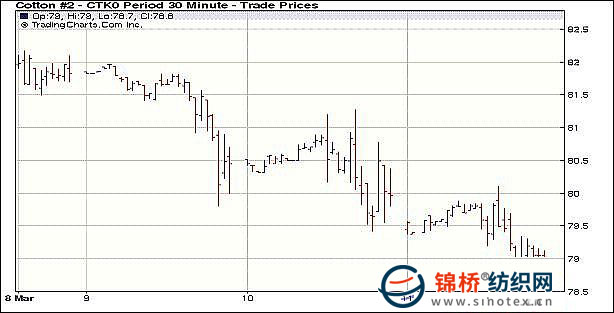 紐約期棉向下調(diào)整近期合約跌破80美分(3-11)