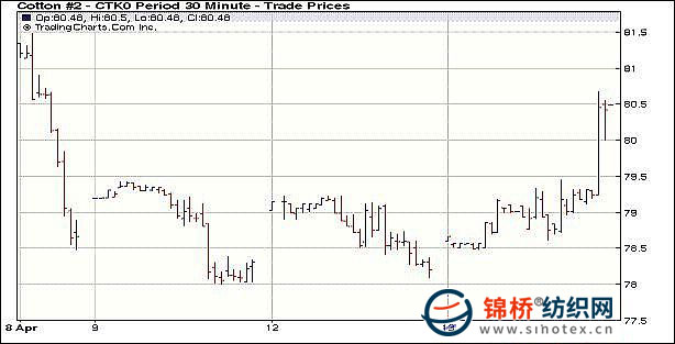 紐約期棉開盤平穩(wěn)尾市突發(fā)拉高近200點(4-13)