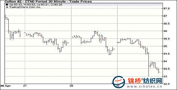 紐約期棉近期合約午盤大幅下挫(4-29)