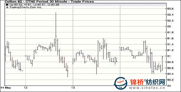 錦橋紡織網(wǎng)—資訊頻道> 棉花信息> 紐棉期貨>正文 紐約期棉高開震蕩窄幅收跌(5-14)