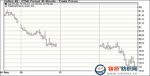 錦橋紡織網(wǎng)—資訊頻道> 棉花信息> 紐棉期貨>正文 紐約期棉低走跌破80關(guān)口六連溫和下調(diào)(6-1)