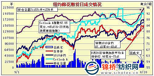 錦橋紡織網(wǎng)—資訊頻道> 棉花信息> 紐棉期貨>正文 紐約期棉低開(kāi)震蕩全線收陰繼續(xù)增倉(cāng)(8-20)