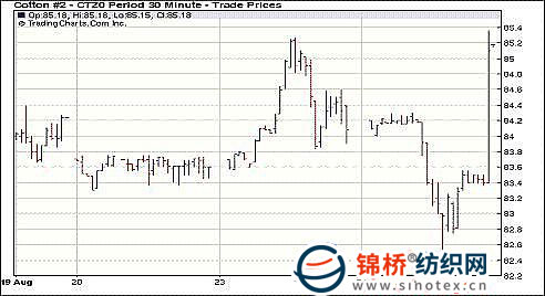 紐約期棉低開下滑尾盤大幅拉高增倉續(xù)漲(8-24)