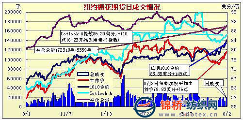 紐約期棉新花年度第一交易日近期合約放量增倉(cāng)再漲百余點(diǎn)(8-2)