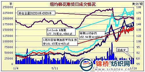 紐約期棉午市上沖近期合約觸及漲停三連暴漲(1-20)