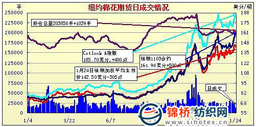 紐約期棉近期合約五連漲停板刷新前高(1-24)