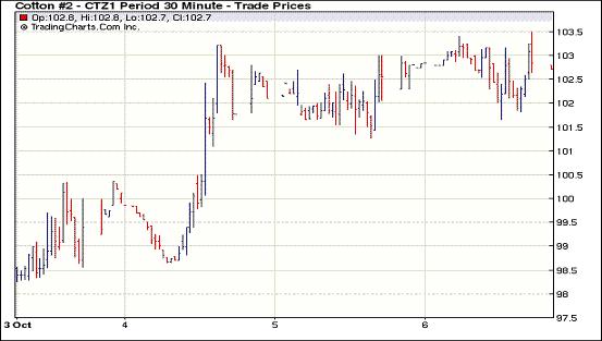 10月6日紐約期棉窄幅震蕩,成交依舊清淡,投資者繼續(xù)持觀望態(tài)度。當(dāng)日市場平開后窄幅震蕩,主力12月合約盤中最低至101.65美分/磅,后少量買盤進(jìn)入促價格反彈,當(dāng)日最高點為103.50美分/磅。盤終近期10月合約收于102.25美分/磅,跌50點;12月合約收于102.73美分/磅,漲43點。其它合約收漲32-78點不等。周四的美棉出口周報顯示,最近一周美棉簽約出口為2萬噸,較此前一周下降62.9%。其中中國簽約3.4萬噸,占當(dāng)周美棉出口簽約總量的170.2%,而土耳其、韓國、孟加拉等仍為負(fù)簽約。