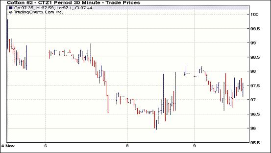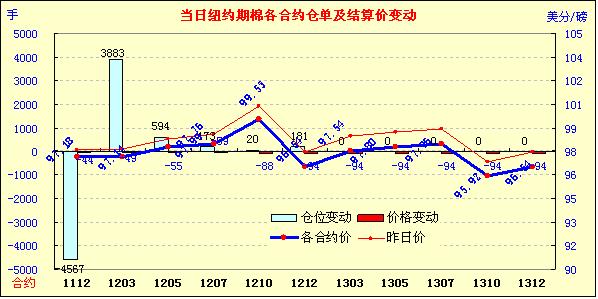 11月9日受意大利債務(wù)憂慮拖累,美元走高,歐美股市及大宗商品市場(chǎng)普遍下挫,紐約期棉全面收跌,主力1112月合約結(jié)算價(jià)97.18美分/磅,跌44點(diǎn),1203月合約結(jié)算價(jià)97.14美分/磅,跌49點(diǎn)。當(dāng)日市場(chǎng)開盤震蕩走高,主力1112月合約最高至98.18美分/磅(+56點(diǎn));后美元走高及股市、外部商品市場(chǎng)走低連累期棉下滑,該合約最低點(diǎn)至97.62美分/磅,震蕩幅度156點(diǎn);尾盤時(shí)受買盤支撐回補(bǔ)部分跌幅,盤終該合約小幅收跌,其他遠(yuǎn)期合約也以告跌收盤,跌幅34-94點(diǎn)不等。美國(guó)農(nóng)業(yè)部(USDA)昨日公布的全球供需預(yù)測(cè)報(bào)告對(duì)市場(chǎng)影響不大,意大利國(guó)債收益率飆升以及關(guān)于歐元區(qū)的新一輪擔(dān)憂成為各方關(guān)注焦點(diǎn)。美國(guó)股市昨日大幅下挫,創(chuàng)9月中旬以來的最大單日跌幅;歐洲股市大幅走低;外部商品市場(chǎng)也全面下挫,期棉受連累呈下跌趨勢(shì),未來能否上行還需關(guān)注歐元區(qū)債務(wù)危機(jī)的進(jìn)一步發(fā)展。