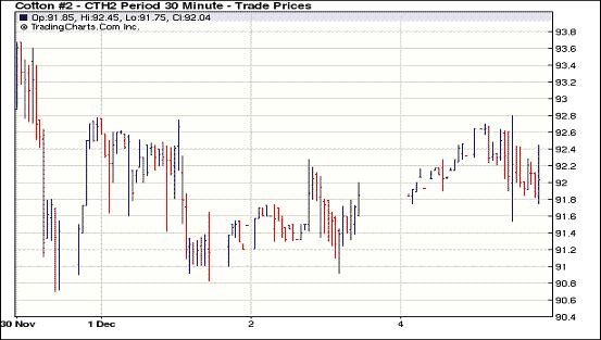 12月5日,受歐債危機擔憂拖累,外部谷物商品市場普遍走低、原油市場基本收平,紐約期棉獨善其身,在少量買盤支撐下連續(xù)第三個交易日收漲,主力1203月合約結(jié)算價92.22美分/磅,漲38點,其他合約漲幅16-105點不等。各方普遍持觀望態(tài)度,市場成交清淡。當日市場早盤震蕩走高,主力1203月合約至當日最高點92.80美分/磅(+96點);午盤后歐債憂慮拖累外部商品市場普遍走低,期棉受累同樣下跌,該合約最低至91.54美分/磅,震蕩幅度126點;尾盤時買盤介入促該合約回補部分跌幅,盤終小幅收漲,三個交易日累計漲幅131點。標普將歐元區(qū)17個國家中15個國家的評級列入負面觀察名單,理由是新的系統(tǒng)壓力給歐元區(qū)整體信貸狀況帶來拖累,越來越多的歐元區(qū)主權(quán)國家的風險溢價大幅上升,其中包括部分評級為AAA的國家,這將使商品市場繼續(xù)承壓。