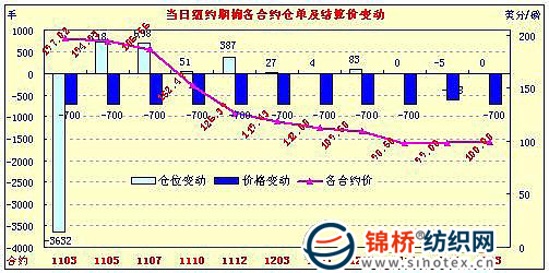 2月18日,中國再度調(diào)高存款準(zhǔn)備金率,同時獲利回吐壓力導(dǎo)致紐約期棉棉花從700點漲停到700點跌停,寬幅波動,放量跌停,從近期合約到12年10月合約盡皆跌停。當(dāng)日期棉再度開盤漲停,漲勢兇猛,但是獲利回吐壓力,同時中國再度上調(diào)存款準(zhǔn)備金率令國際市場承壓,期棉快速下跌,雖然盤中期棉得到買盤支持而收窄跌幅,但盤終各合約依然紛紛以跌停收盤,同時交易放量活躍,成交達6.8萬手。期權(quán)交易再度被暫停交易,不過是由于跌幅達到同期合約的2倍(1400點)。 紐約期棉近期1105合約近三個交易日交易走勢 |