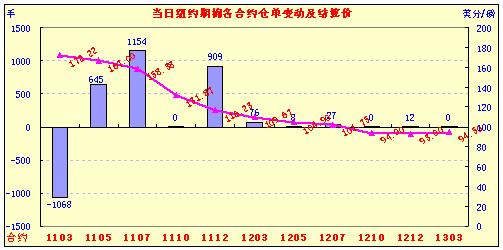 紐約棉花期貨近期1103合約近三個交易日交易走勢
