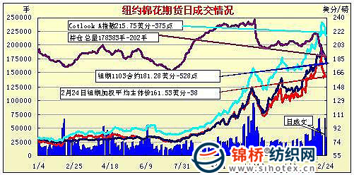 紐約期棉四連跌停板跌幅近2000余點(2-24)