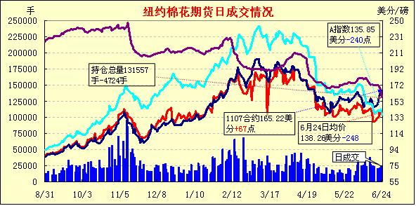 紐約期棉先抑后昂減倉小幅收漲(6-24)