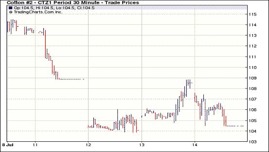 紐約期棉平開下滑近期合約午盤全線跌停(7-14)