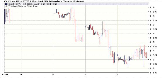 7月7日,紐約期棉除前兩份合約下跌,其他合約小幅上漲,結(jié)束連續(xù)陰跌勢頭。當(dāng)日為7月合約最后交易日,結(jié)算價(jià)136.2美分/磅,跌1920點(diǎn)(進(jìn)入交割期合約不受漲跌停板限制),主力1112月合約113.52美分,漲10點(diǎn)。當(dāng)日12月合約平開后短暫上揚(yáng),因缺乏積極買盤跌破開盤水平,最低價(jià)跌至112.26美分,為1月31日(五個(gè)多月)以來最低水平。后期賣盤未加大打壓力度,市場觸底反彈,12月合約微幅收漲。內(nèi)外基本面因素對(duì)期棉市場形成壓力,一方面美棉出口周報(bào)周五發(fā)布,美棉可能仍有合同取消,目前棉花出口裝運(yùn)進(jìn)度不盡人意,并且市場預(yù)期7月的美國農(nóng)業(yè)部供需報(bào)告中或?qū)⒄{(diào)低美棉出口量;另一方面,全球紡織行業(yè)行情不濟(jì),需求陷入疲態(tài),暫無明顯好轉(zhuǎn)痕跡。
