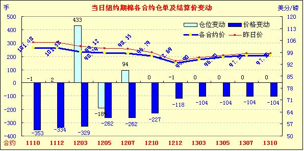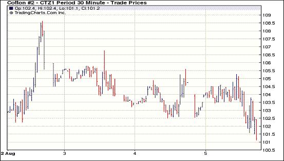 8月5日,紐約期棉受到投機賣盤的打壓,各合約全面下跌,前三個合約跌幅超過300點。當日主力1112月合約早盤承接前一日漲勢,短暫走高至105.41美分/磅,但很快遭到投機賣盤和技術(shù)賣盤的的打壓,大幅下挫,最低至101.12美分/磅,盤終收于低位101.58美分/磅。近期1110月合約收于101.48美分/磅,跌353點。遠期合約相對跌幅較小。市場下跌主要因美國債務(wù)危機引發(fā)市場對全球經(jīng)濟的擔(dān)憂,全球商品市場及股市普遍走弱,拖拽紐約期棉同步下跌。