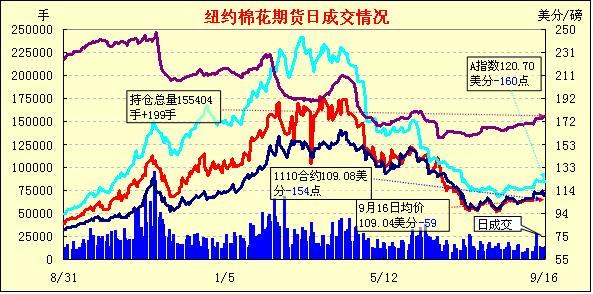 紐約期棉寬幅震蕩放量續(xù)跌(9-16)