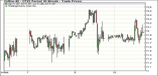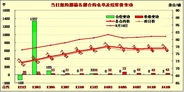 10月10日,紐約期棉市場小幅上漲,市場密切關注11日將發(fā)布的USDA(美國農(nóng)業(yè)部)10月份全球供需預測報告,近期12月合約結(jié)算價72.01美分/磅,漲26點,遠期3月合約73.02美分,漲28點。當日12月合約當日交易在71.66-72.31美分區(qū)間波動,上下幅度僅65點,交投清淡,市場觀望氣氛濃厚。該合約在71.81美分平穩(wěn)開盤后微幅走低,低點反彈上攻72美分成功后缺乏買盤跟進回落至低點,交易尾段震蕩上揚收于72美分以上。分析指出,11日USDA將發(fā)布月度預測報告,市場預期美棉產(chǎn)量有調(diào)減可能,13/14年度美棉種植意向下滑,但最大消費國中國棉花消費量看減,全球期末庫存或繼續(xù)調(diào)增。