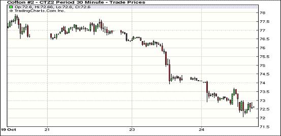 平倉(cāng)打壓紐約期棉震蕩下行兩連跌(10-24)