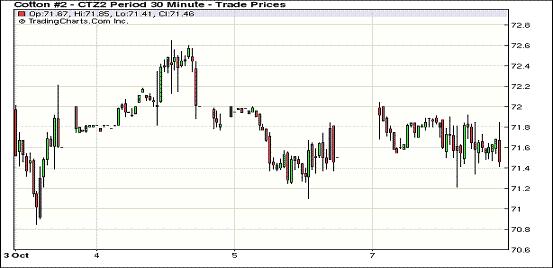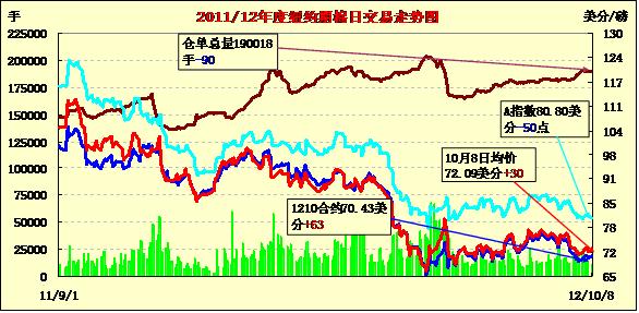 10月8日,紐約期棉普遍上揚(yáng),近期10月合約結(jié)算價70.43美分/磅,漲63點;主力12月合約結(jié)算價71.78美分/磅,漲29點。當(dāng)日市場缺乏方向指引,投資者關(guān)注美國農(nóng)業(yè)部將于11日發(fā)布的全球棉花供需預(yù)測報告。期棉小幅高開,目前棉花供應(yīng)充足、消費疲軟導(dǎo)致市場承壓,而2013年度全球面積縮減則對市場形成支持,買賣雙方在USDA月報公布前交戰(zhàn)膠著,主力合約在71.21-72.04之間激烈震蕩,盤終小幅收漲。當(dāng)日外部市場除小麥小幅收高外,其他商品市場普遍走低。