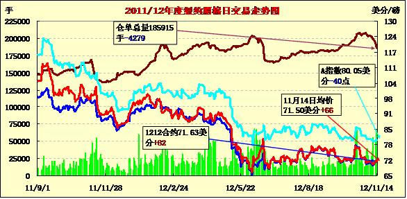 11月14日,紐約期棉市場因空頭獲利平倉,市場全面上漲,近期12月合約結算價71.63美分/磅,漲82點,主力3月合約71.26美分,漲26點。當日近期12月合約整日交易穩(wěn)定在70美分以上,交易后期攀上71美分并收于近高點;主力3月合約高開后穩(wěn)定在71美分以上運行,盤中短暫跌破該水平,交易后期反彈收高,上周美國農業(yè)部報告利空,市場曾一度下跌,15日空頭平倉交易給市場支持。分析師指出,雖然中國棉花消費并不好,但近期中國買家采購了一些美棉,有投機買盤介入ICE期棉市場,支持期貨價格走高,下一步1關注12月合約73美分阻力位。