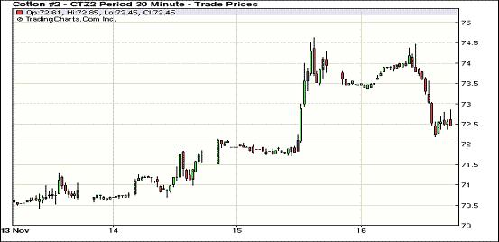11月16日,紐約期棉市場(chǎng)漲跌不一,近期12月合約結(jié)算價(jià)72.73美分/磅,跌123點(diǎn),1303月合約72.64美分,漲40點(diǎn)。上周美棉出口增加,對(duì)主力合約形成支持。當(dāng)日12月合約先漲后跌,早盤(pán)主要在73.5美分一線(xiàn)波動(dòng),盤(pán)中突破74美分,因獲利了結(jié)賣(mài)盤(pán)打壓從高位一路回落,最終跌破73美分;3月合約低開(kāi)后區(qū)間盤(pán)整,上行突破72.5美分有難度,下行在72美分有支撐。據(jù)美國(guó)農(nóng)業(yè)部報(bào)告,上周美棉出口增加,對(duì)主力合約形成支持。技術(shù)上,主力3月合約位于20日均線(xiàn)之上,如能上漲至73美分以上,則將突破50日均線(xiàn)。 據(jù)美國(guó)農(nóng)業(yè)部(USDA),11.2-11.8一周美國(guó)凈簽約出口本年度陸地棉83937噸(較前一周增39%,較近四周平均值大幅增加)。當(dāng)周簽約本年度陸地棉最多的國(guó)家和地區(qū)有:巴基斯坦(27510噸)、中國(guó)(16465噸)和土耳其(14923噸)等地。