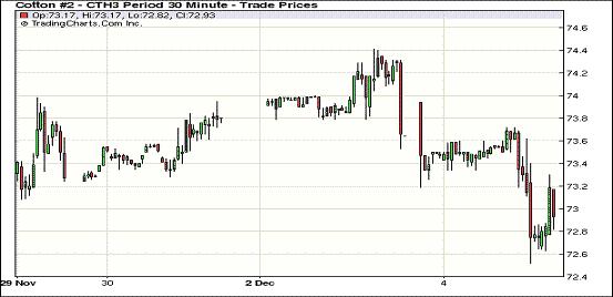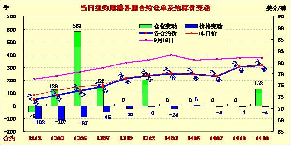 11月4日,受國際棉花咨詢委員會(ICAC)12月份全球棉花供需預測報告利空影響,紐約期棉除1405月合約外普遍走低,近期1212月合約結(jié)算價71.91美分/磅,跌102點;主力1303月合約結(jié)算價72.91美分/磅,跌107點。當日經(jīng)濟面上消息平平,主力合約早盤在73.4-73.6美分之間窄幅震蕩,ICAC調(diào)高本年度棉花產(chǎn)量及期末庫存打壓市場回落,該合約當日最低至72.52美分/磅,尾盤時雖略有反彈仍收跌百余點。當日外部谷物商品除大豆外也普遍收跌。ICAC最新預測本年度全球棉花產(chǎn)量2608萬噸,較上次預測增20萬噸;消費2350萬增6萬;期末庫存1662萬增23萬,這對期棉形成壓力。經(jīng)濟面上,投資者繼續(xù)關(guān)注美國兩黨在華盛頓進行的預算談判。