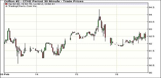 2月16日,因美國(guó)經(jīng)濟(jì)數(shù)據(jù)樂(lè)觀及歐債危機(jī)解決出現(xiàn)進(jìn)展,美國(guó)股市及多數(shù)外部商品市場(chǎng)走高;棉花基本面上美棉出口數(shù)據(jù)利好,紐約期棉主力5月合約受支撐實(shí)現(xiàn)五連漲,盤終結(jié)算價(jià)為93.71美分/磅,漲23點(diǎn),其他合約漲跌互現(xiàn)。當(dāng)日主力合約開盤后震蕩下行,當(dāng)日最低至92.65美分/磅;后經(jīng)濟(jì)層面樂(lè)觀刺激期棉低點(diǎn)反彈,該合約最高至94.00美分/磅,震蕩幅度135點(diǎn);尾盤時(shí)買盤獲利回吐部分漲幅,盤終該合約連續(xù)第五個(gè)交易日收漲。近期3月合約收于92.45美分/磅,跌5點(diǎn)。美國(guó)勞工部昨日?qǐng)?bào)告稱,截至2月11日當(dāng)周首次申請(qǐng)失業(yè)救濟(jì)人數(shù)減少13,000人,至348,000人,為近四年來(lái)的最低水平,同時(shí)歐洲在希臘第二輪救助方案問(wèn)題上取得進(jìn)展,這些消息對(duì)市場(chǎng)帶來(lái)提振?;久嫔?,據(jù)美國(guó)農(nóng)業(yè)部(USDA),2.3-2.9一周美國(guó)凈簽約出口本年度陸地棉22997噸,為近四周以來(lái)最高,美棉累計(jì)簽約量超過(guò)年度計(jì)劃,實(shí)際裝運(yùn)量占到簽約量的42%。