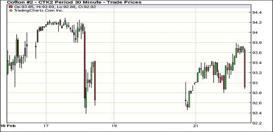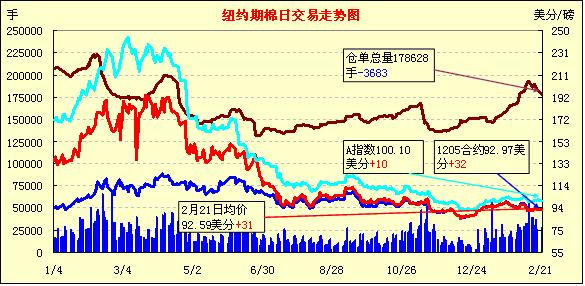 2月21日,因期待已久的希臘救助協(xié)議終獲批準(zhǔn),給市場(chǎng)人氣帶來(lái)提振,美元走軟、歐美股市全線(xiàn)走高,紐約期棉受支撐除近期3月合約小跌外,其他合約普遍收高,主力5月合約結(jié)算價(jià)為92.97美分/磅,漲32點(diǎn)。 當(dāng)時(shí)市場(chǎng)平穩(wěn)開(kāi)盤(pán),午盤(pán)時(shí)主力合約受外部谷物及油料市場(chǎng)走低拖累,至當(dāng)日最低點(diǎn)92.46美分/磅;后買(mǎi)盤(pán)介入促期棉低點(diǎn)反彈,該合約最高至93.79美分/磅,震蕩幅度133點(diǎn);尾盤(pán)時(shí)買(mǎi)盤(pán)獲利回吐部分漲幅,盤(pán)終該合約小幅收漲。近期3月合約收于91.25美分/磅,跌20點(diǎn)。歐洲官員同意向希臘提供1,300億歐元救助資金,幫助該國(guó)避免出現(xiàn)債務(wù)違約并留在歐元區(qū)內(nèi)部,這一利好消息促使期棉市場(chǎng)普遍走高。
